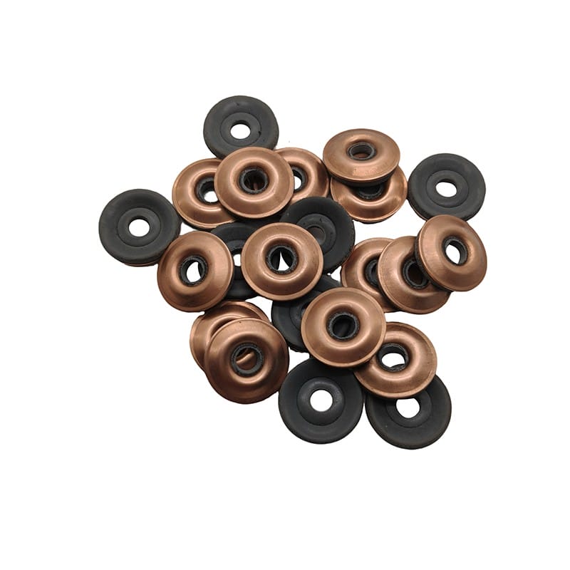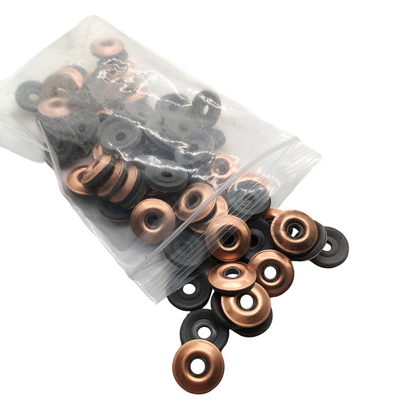 Nossas arruelas adesivas termofusíveis de cobre são feitas de cobre e borracha, apresentando um diâmetro interno de 4 mm e um diâmetro externo disponível em 15 mm ou 19 mm. Eles servem como um componente de vedação comumente usado. Polimos a superfície para remover camadas de oxidação antes de aplicar o revestimento adesivo hot melt. Nossos produtos oferecem vedação à prova de vazamentos, suportam altas temperaturas e corrosão e funcionam de maneira confiável em ambientes extremos. Além disso, as arruelas adesivas termofusíveis de cobre oferecem excelente condutividade elétrica e térmica e são fáceis de instalar. As arruelas adesivas termofusíveis de cobre são amplamente utilizadas na fabricação automotiva, geração de energia e equipamentos eletrônicos. Eles geralmente são usados para vedar, conectar e fornecer proteção contra poeira e umidade.