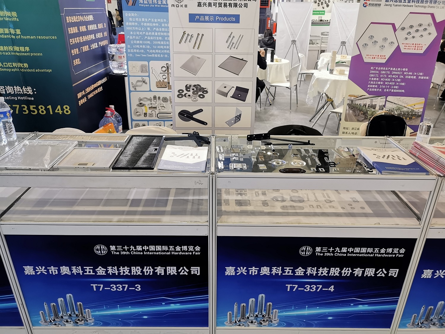 Jiaxing Aoke estará presente durante toda a exposição. Apresentamos peças estampadas e fixadores de alta qualidade com processos de fabricação de precisão, excelente resistência à corrosão e alta resistência, adequados para uma ampla gama de aplicações, incluindo fabricação de móveis, montagem industrial e equipamentos mecânicos.